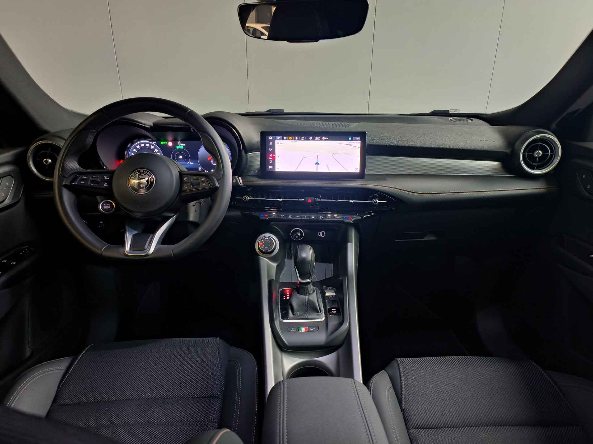 Geavanceerde systemen kunnen tijdens de rit bepaalde taken van u overnemen. Zo kijken er als het ware steeds extra ogen met u mee, zodat u tijdig kunt reageren op noodsituaties. In het instrumentarium kunt u bovendien de verkeersborden zien die u onderweg tegenkomt. Zo helpt deze Alfa Romeo u om veiliger te rijden. Indien u onbedoeld de rijstrook lijkt te verlaten, reageert het Lane-keeping systeem meteen en corrigeert. Mindert een voorligger onverwachts te veel vaart, dan komt de forward collision warning in actie en waarschuwt meteen. Bovenop deze veiligheidsfeatures heeft deze Alfa Romeo bovendien vermoeidheidsherkenning, autonoom remsysteem en bandenspanningcontrolesysteem.