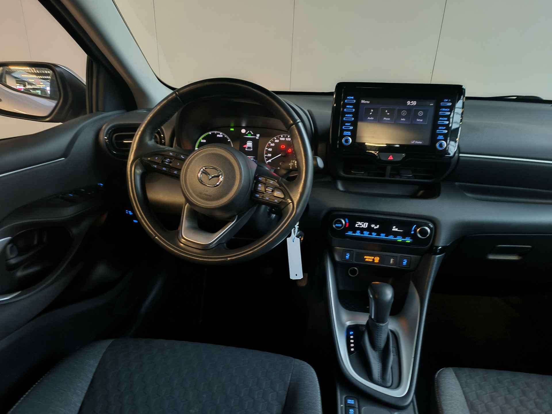 De hoogwaardige achteruitrijcamera en het display met hoge resolutie zorgen dat helemaal niets u meer ontgaat van wat er achter de auto gebeurt. Met adaptive cruise control houdt deze auto automatisch afstand tot uw voorligger. Laat u onderweg niet afleiden, de bediening van het audiosysteem gaat met knoppen op het stuur. Natuurlijk is de audio-installatie voorzien van dab-ontvangst. Bij de luxe van deze auto hoort ook automatische airconditioning. De uitrusting van deze Mazda is met isofix-aansluiting, centrale deurvergrendeling met afstandsbediening, boordcomputer en verstelbaar stuur behoorlijk compleet.